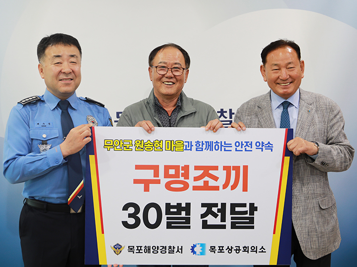 목포해양경찰서는 17일 목포상공회의소 지원으로 맨손어업 어민 대상 ‘벨트형’ 구명조끼 3..