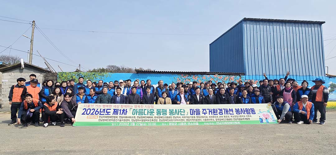 전남지체장애인협회(협회장 김종택)는 지난 3월 27일 영암군 시종면 연소마을에서 ‘2026년 제1차 아름다운 동행 봉사단 봉사활동’을 개최했다.‘아름다운 동행 봉..